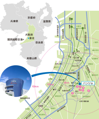 - 車・バス・電車と交通アクセスが良好。泉ケ丘駅の乗降者数は、南海電鉄泉北線では最多の1日約4.1万人。また、パンジョから5km圏内の人口は約51万人。10km圏の人口は約96万人と恵まれ、今後も増える見込みです。