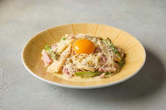 フレッシュアスパラとパンチェッタのカルボナーラ