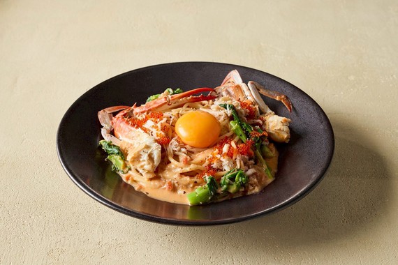 極・ワタリガニと菜の花のトマトカルボナーラ