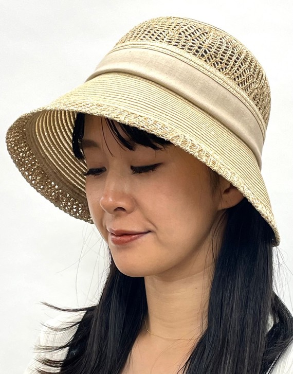レーシーなデザインを組み合わせた異素材ミックスのハットは、涼しさと快適さが両立。軽量タイプです。